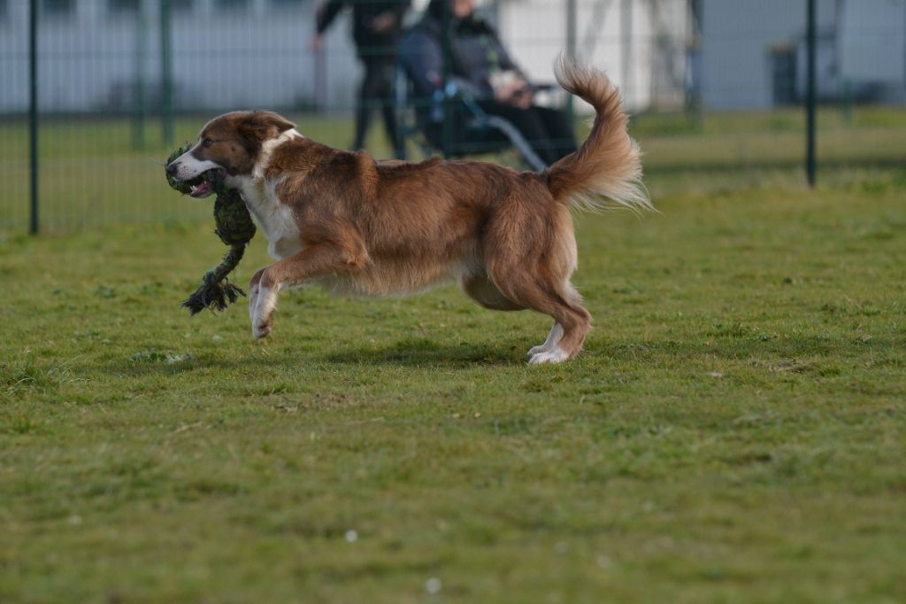 Ultra, notre chienne Border Collie de couleur sable bleu, est une véritable boule d'énergie. Polyvalente et toujours partante, que ce soit pour une séance d'agility ou se promener. Elle vit chaque moment à 100%.